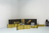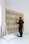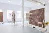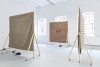 Die Bilder sind auf beweglichen Tafel-Strukturen befestigt. Diese Tafel-Kombinationen bilden eine Architektur im Raum, durch die sich die Besucher bewegen und in die sie sich einfügen muessen. Innerhalb dieser Architektur bildet ein Ensemble aus Resten von Kupferblechen ein musikalisches Theater, das von den umherschwärmenden Notationen gerahmt wird. Eine für dieses achtteilige Ensemble geschriebene Komposition wird zu bestimmten Zeiten am Tag aufgeführt.