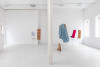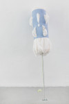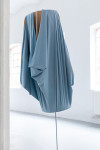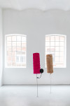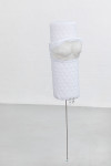 Für ihre Lüneburger Ausstellung hat Daphne Ahlers eine Serie neuer Arbeiten realisiert: Stelen aus bekleideten Schaumstoffrollen auf beweglichen, im Boden fixierten Stäben. Diese reichen zwar nicht an „wirkliche“ Körper heran, können aber durchaus als Personifikationen unterschiedlicher Typen gelesen werden. Gleich einer Familienaufstellung – bzw. entsprechend jeder Community – stehen sie miteinander in Beziehung und sind nicht ohne Verbindung zueinander zu sehen. Alle in diesem Gebilde scheinen eine ganz bestimmte räumliche Position einzunehmen und ihre je spezifische Rolle zu spielen. Diese Rollen oder Identitäten sind jedoch „angezogene“, wird den leblosen Schaumstoffformen doch erst qua Ausstaffierung ihre Charakterisierung zugeschrieben. Hier blitzt kurz Ahlers Interesse für Mode auf. Darüber hinaus wird aber auch, wie es der Titel der Ausstellung bereits andeutet, das Moment des Scheiterns aufgerufen. „Die Langstreckensängerin“, eine an sich schon paradoxe Figur, da der Gesang niemals soweit reichen kann wie es die Langstrecke andeutet, wird im Kontext der Ausstellung jedoch umso mehr dem Misslingen Preis gegeben, als Klang einen Körper braucht, um zu klingen, die Schaumstoffkörper jedoch jeden Ton verschlucken und als Resonanzraum gänzlich ungeeignet sind. In den Arbeiten geht es aber auch um Selbst- und Fremdwahrnehmung, um Bewertung und Rückweisung von Bewertung, um Verhältnisse und Verhaltensweisen sowie deren soziale und politische Dimensionen, um Unbeweglichkeit und Instabilität, aber auch um Möglichkeiten und Unmöglichkeiten des Ausweichens und Sich-Entziehens. Man kann es vielleicht so sagen: Ahlers spannt hier einen Bogen vom einstigen Interesse am Körper(fragment) hin zum Körper in Beziehung, welcher zwar immer noch Fragment bleibt, aber darüber hinaus einen sozialen Körper bildet.