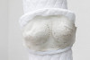 Vielleicht könnte man Daphne Ahlers’ Arbeiten zuallererst als etwas beschreiben, das einen Bezug zum Körper aufweist. Da gibt es Abdrücke von Gesichtern, Formen weiblicher Geschlechtsteile oder auch Gebilde, die an Gliedmaßen oder Körperflüssigkeiten erinnern. Der Bezug zum Körper ist zum Teil aber auch eher subtil und verdankt sich den verwendeten Materialien wie Latex, Silikonwatte, Nylon oder Soft Shell. Bei Ahlers ist der Körper jedoch meist kein Ganzer, sondern bleibt Fragment. Er wird nicht als Handelnder aufgerufen; auch nicht als Erfahrungsraum, der sich jenseits des sprachlich Fassbaren verortet, im Sinne von mystischem oder magischem Erleben; und eben auch nicht als etwas, das im Geleit posthumanistischer oder postidentitärer Ideen erweitert oder verändert wird. Dies ist insofern bemerkenswert, als dass der Körper in den letzten Jahren gerade aufgrund dieser Aspekte und Potentiale ein ziemliches Revival erfahren hat und in zeitgenössischen künstlerischen wie theoretischen Diskursen überaus präsent ist.
