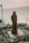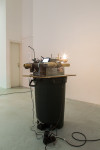 Im Licht dieses Erbes stehen auch die Arbeiten Mathis Altmanns, da auch sie auf einem akkumulativen Verfahren disparater Elemente basieren. Von einer exzessiven wie exzentrischen Kombinatorik äußerster Beziehungslosigkeit kann jedoch keine Rede sein, denn Altmanns Skulpturen sind eher in Betonwüsten eingebettete oder auf diese aufgepfropfte miniaturartige Raum- und Weltmodelle, die gleich einem kontrollierten Chaos entsprungen wie aus einem Guss daherkommen. Obwohl sie trotz ihres Modellcharakters nicht der Logik von Größenverhältnissen verpflichtet sind, erwecken sie dennoch die Illusion einer modellhaften, kohärenten Proportionalität, die wiederum den Ansatz einer funktionierenden Narration zumindest andeutet. Diese scheint ihren Bezugspunkt in zeitgenössischen Realitäten zu finden, denn in Altmanns Arbeiten sind zumeist Versatzstücke eingebettet, die auf genau diese verweisen („Finally, I get the investment advice I expect“). Wenngleich all das Über- und Ineinandergelagerte ohne Frage ein klaustrophobisches Gemisch ergibt, das sicherlich etwas mit heutiger Realität zu tun hat, erschöpfen sich Altmanns Arbeiten jedoch nicht in einer konstatierenden Zeitdiagnose. Viel zu zugespitzt, überdreht und artifiziell, um tatsächlich Realität zu simulieren, lassen sie sich weitaus treffender als Erfindung denn als Abbildung von Welt beschreiben; eher als an den morbiden und terrorisierenden Aspekten zeitgenössischer Realität geschulte Fiktion denn als Dokumentation. Die hier markierte Distanz zum, aber nicht Independenz vom Faktischen zeigt sich auch in den Altmanns Arbeiten innewohnenden ironischen, humoristischen und kokettierenden Momenten. Dabei kommt die zweifelsohne sie begleitende affirmierende und umarmende Faszination für das, was sie aufrufen – das Morbide, Chaotische, Nervöse und Vulgäre -, sowie das Fehlen jeglichen Anflugs einer Verzweiflung an der monolithischen Macht und am Terror des Spektakels sowie des alle materiellen Spezifika nivellierenden Konsums jedoch nicht zynisch herüber, was vermutlich in der Empathie und in der Liebe zum Detail begründet liegt, mit der Altmann seine Szenerien entwirft und zusammenfügt.