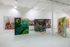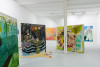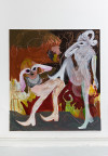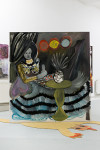 Kamilla Bischof entwickelt in ihren Malereien, die sich vorwiegend gegenständlicher Motive bedienen, eine allegorisch und surreal anmutende Bildsprache, die gleichermaßen das Reale wie das Imaginäre berührt. Eingebettet in eine abstrahierte Umgebung oder bühnenhaften Interieurs, umgeben von Gewächsen oder fantastischen Tierwesen, sind es vor allem Bischofs bis ins Groteske überzogene Figuren, die von einer Eindringlichkeit zeugen, von einer seltsamen Entrücktheit bei gleichzeitiger Präsenz, wohingegen die sie umgebenen Szenen häufig zurücktreten, sich verlieren oder gar ausfransen. Ob malerisch durchformuliert, als abstrakte farbige Gesten oder auf den Bildraum gesetzte Zeichen: Bischofs Geschöpfe erscheinen oftmals verhindert, verzerrt oder verbogen, als wären sie einem entzündlichen Nerv im Affekt entsprungen. Und wenngleich sie aufgrund ihrer im Geschehen verorteten Körper oder überproportionalen Hände als Handelnde ausgewiesen sind, bleibt das Gelingen der im Bild angedeuteten Handlungen aufgrund ihrer Beschaffenheit jedoch offen. So sind es weniger Narrationen als vielmehr Zustände oder mentale Verfassungen, die Bischofs Szenerien und Figuren umschreiben und für die sie durchaus auch als Allegorien verstanden werden können: Zustände des Verhindertseins, aber auch der inneren Unruhe und Zerrissenheit, der Aggressivität und des Nichtverstehens. In diesem Sinne dehnen sich ihre Bilder eher in die Tiefe, in den eigenen Bildraum aus, als in Form von Erzählsträngen in Richtung der anderen im Raum platzierten Bilder zu deuten. Auch wenn sie demnach nicht a priori aufeinander verwiesen sind, verhalten sie sich dennoch zueinander, evozieren in ihrem Miteinander-in-Bezug-gesetzt-Sein und in der Überlagerung ihrer Motive Assoziationsketten, die in den Malereien selbst zwar nicht explizit, aber doch latent angelegt sind. So scheinen die Figuren etwa aneinander vorbei zu reden, zu fantasieren, oder über Trivialitäten zu grübeln – zum Beispiel darüber, ob das nun ein Turm oder eine Frisur ist. Dass die Arbeiten jedoch nicht in solcherart Deutungen aufgehen, zeugt von einer Souveränität, Offenheit, Komplexität und Ambiguitätstoleranz, die sich nicht zuletzt darin zeigt, dass sich Bischofs Bildwelten zwischen so unterschiedlichen Momenten wie Fantasie und Realität entfalten.
