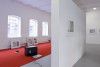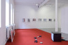 Die gerahmten Fotografien kontrastieren mit einem zweiten und gleichberechtigten Ausstellungsteil, der sich wie die Satzfragmente renitent zu den Fotografien verhält und zugleich im Dialog mit diesen ein Spektrum an Narrativen und Anspielungen eröffnet: Eine Art exzentrisches und zugleich minimalistisches Display, das sich aus Plexiglaskonstruktionen, einem rotem Teppich und einer temporären Ausstellungswand zusammensetzt.