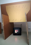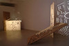 Florian Zeyfang (D) zeigt bei hallefürkunst die 2002 entstandenen Installationen „Complaintes“ und „Fischinger treffen“. Die Arbeit „Complaintes“ im vorderen Ausstellungsraum besteht aus zwei Diaprojektionen mit jeweils vierzig Motiven. Diese werden auf großformatige Elemente aus Wabenkarton geworfen, deren Perforationen vier Stadtgrundrisse aus der Geschichte Berlins darstellen. Die beiden Dia-Serien sind als grobe, dem Comic ver-wandte Zeichnungsfolgen angelegt und zeigen einerseits Reformulierungen von Max Ernsts Grafikedition „Une Semaine de Bonté“, vermischt mit ikonografischen Verweisen auf Computerspiele, andererseits Motive aus der Berliner Einbrecherszene der zwanziger und dreißiger Jahre (Einbruchswerkzeug, Safe, Keller, etc.). Grundlegend für diese Motivauswahl ist der Gedanke an die psychosozialen Ebenen, die in der Stadtforschung eher selten abgebildet werden — Begehren, Liebe, Gewalt, Verbrechen — sondern ihren Niederschlag mehr in populären Medien wie den billigen Grafiknovellen des 19. Jahrhunderts bei Ernst oder heute eben in Computer-spielen finden.