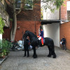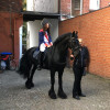 Puppies is thinking about wearing the courier costume like in the Trisha Donnelly but she’s been on a roll doing these nude performances. She gave a lecture naked last night and did a naked photoshoot for a magazine. Basically, after so many costumed performances, it could be interesting to perform nude over and over and over for maybe a year or so. So that’s the gist of the show, she rides into the courtyard on a horse, announces defeat and then she’ll probably sit on the horse for a while.